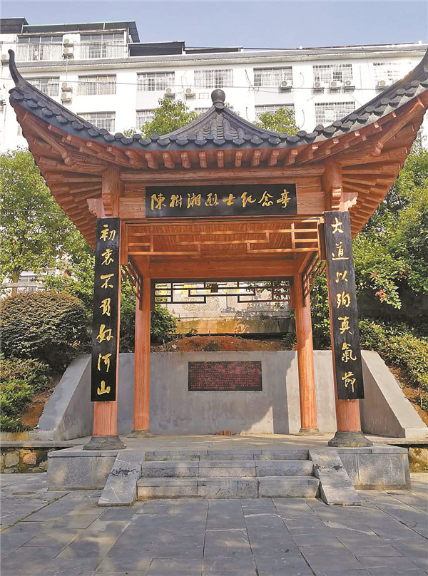 1934年12月18日,敵人將陳樹湘抬往道縣縣城,向上級領賞,行至道縣蚣壩鎮石馬神村時,陳樹湘趁敵不備,忍着劇痛,用手撕開腹部傷口,絞斷腸子,壯烈犧牲。