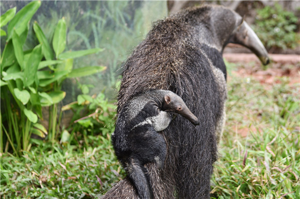據了解,在深圳野生動物園裏,與其他動物相比,大食蟻獸繁殖的成功率要低得多。產後的大食蟻獸和初生的幼崽對環境要求極為苛刻,稍有照顧不周,幼崽和母獸都容易出現意外。幼崽出生後就會被母獸馱在背上,為了避免人為因素干擾而影響幼崽的成長,該園飼養員除了餵食和獸舍清理等工作外,一般不會接觸幼崽。因此,目前還不確定幼崽的性別。為安全起見,平時園方還會通過監控24小時觀察幼崽的成長狀況。