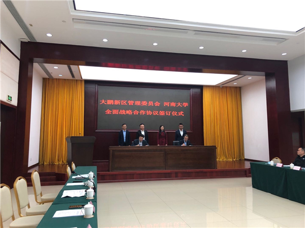 12月9日上午,深圳市大鵬新區管理委員會與河南大學全面戰略合作協議簽約儀式在大鵬新區舉行。大鵬新區黨工委委員、副主任劉峰,大鵬新區黨工委委員、組織人事局局長梁珂,河南大學黨委副書記、副校長劉志軍,河南大學深圳研究院院長牛利民等出席簽約儀式。
