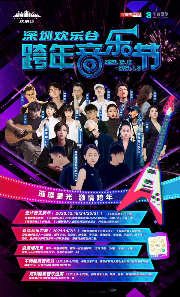 深圳歡樂谷「跨年音樂季」活動將於12月12日啟幕,活動持續到2021年1月3日。