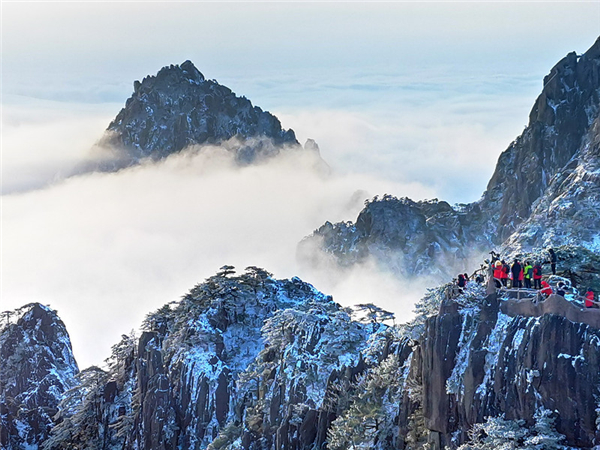 據景區氣象部門介紹,受冷暖空氣共同影響,黃山風景區17到19日還有一次較明顯降雪天氣過程,並伴有霧凇,氣溫偏低,可能出現道路結冰,請來山遊客注意防滑保暖。(記者 吳敏 通訊員 趙美君 )