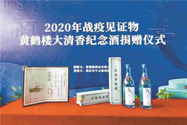 2020年11月中旬,黃鶴樓酒75度大清香原酒作為2020年戰疫見證物被中山艦博物館收藏,湖北省武漢市中山艦博物館是以中國近現代史上一代名艦「中山艦」的名字命名的一座專題紀念性博物館,是國家一級博物館、國家國防教育示範基地、首批國家級抗戰紀念設施遺址。