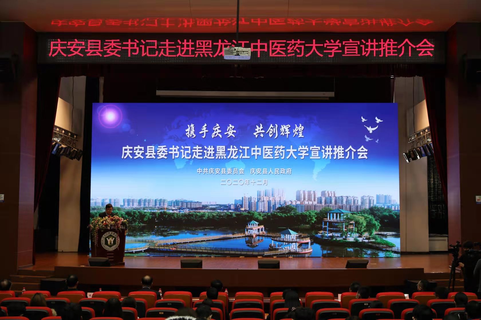 「新時代的慶安,正以求賢若渴的姿態期待着有志於基層創業的青年才俊到來。由衷地希望,我們能共同攜手,在黑龍江省慶安這片浸潤了紅色基因、滿是良田沃土的方興之地,在如火如荼的醫藥產業發展中實現理想抱負、成就事業輝煌、書寫精彩人生。」12月14日下午,中共慶安縣委書記于雷帶領綠鄉「招賢納士」代表團走進黑龍江中醫藥大學,開展「攜手慶安 共創輝煌」主旨宣講活動,邀請年輕學子到「綠鄉」就業、創業,紮根「綠鄉」,實現人生理想,助力慶安振興發展。
