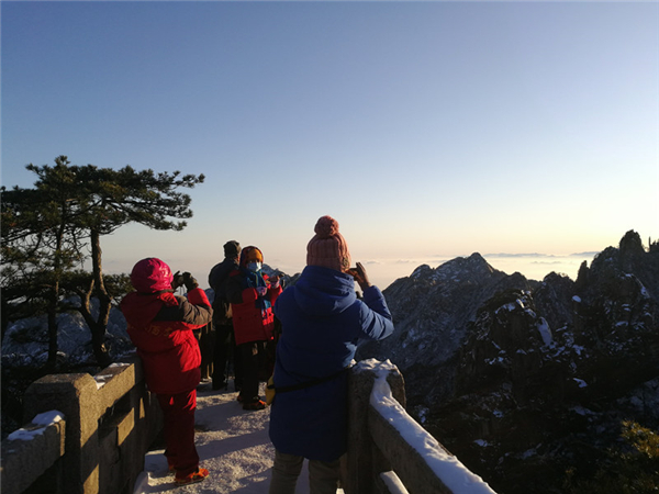 南方的遊客見到雪景更是激動不已。來自廈門的楊金霞 說,一直對黃山雪景充滿期待,以前夏天來黃山遊玩過,但我想體驗不一樣的景致,黃山雪景非常美,看到真想歡呼,黃山太美了,真的是來對了!