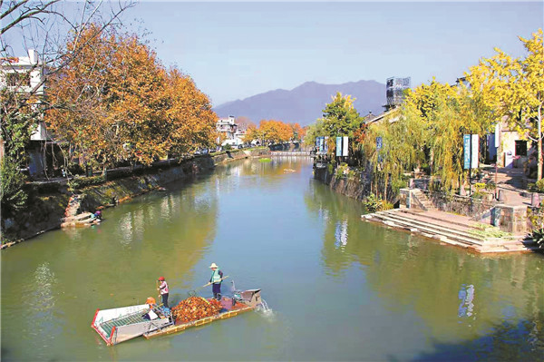 初冬時節,黟縣仍是青山如黛,綠水如眸,生機盎然。11月14日,記者應邀參加第十五屆中國黃山(黟縣)鄉村攝影大展,在大展開幕式舉辦地黟縣古城的漳河上,看到兩位「美容師」乘舟正忙着清理河面漂浮物。波光瀲瀲,倒影輕搖,陽光溫情照耀着這夢境一樣美好的存在。漳河兩岸市民遊客隨心漫步或駐足拍照,人水和諧,令人留戀。