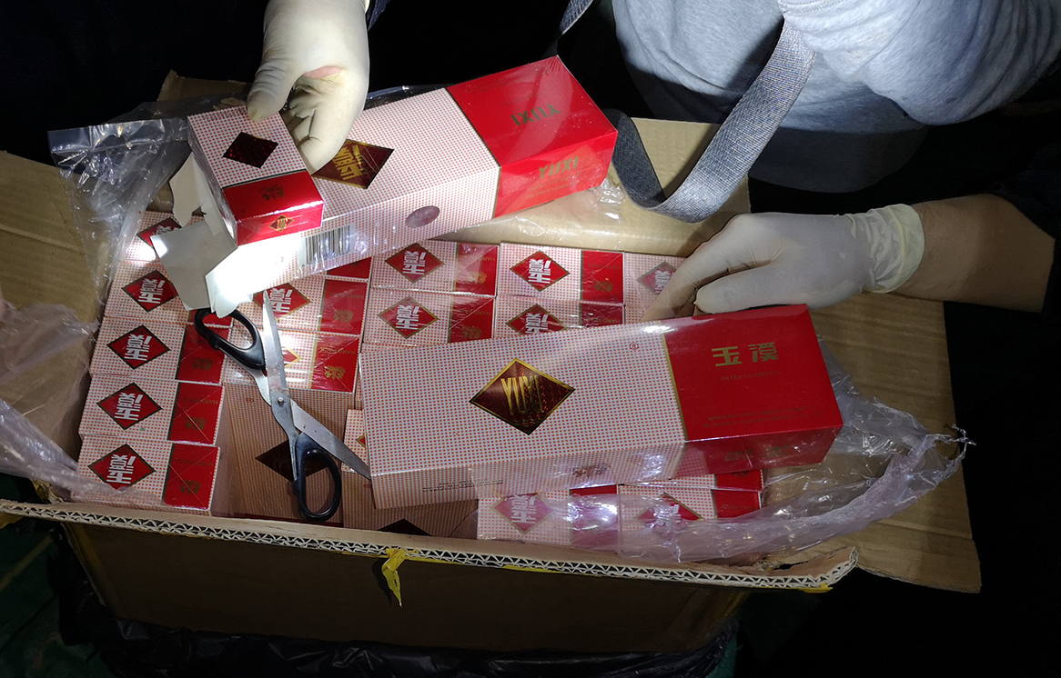 警方查獲走私香煙現場