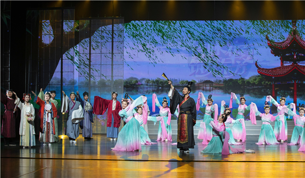 展演活動在歌舞表演《經典詠流傳》中盛大啟幕,精彩絕倫的舞美、鮮艷的服裝、跌宕起伏的背景音樂、鏗鏘有力的誦讀將觀眾帶入了一個充滿詩情畫意的傳統文化勝境。