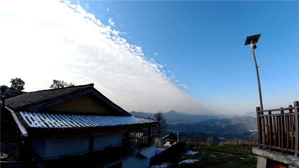 金龍山村小巧精緻,房屋依山而建,高低錯落,至今還保留著部分的土樓,這些土樓黃土夯築,黑瓦蓋頂,顯得原始古樸。村子四周都是翠綠的茶園,茶園中點綴著一些蒼勁的古樹。黃色的土牆、黑色的屋頂、翠綠的茶園、潔白的積雪,使村子的顏色顯得豐富多彩,就像一幅幅渾然天成的畫卷。絕佳的生態環境,使村莊宛如世外桃源、人間仙境,偶然涉足此間的遊客無不驚歎不已。 (記者吳敏 盛紅兵 宋建忠)