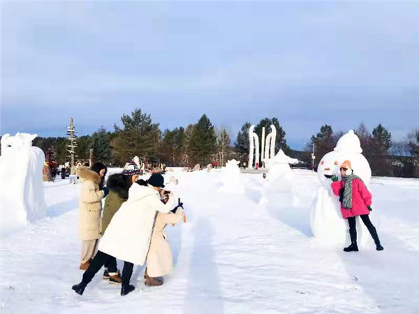今年冬季,漠河市依託氣溫低、雪期長、雪質優的獨特優勢,在北極村景區打造了規模龐大的冰雕雪塑群和冰雪娛樂項目。在神州北極廣場,兩座高15米、長100餘米的巨龍雪雕氣勢恢宏、惟妙惟肖、美輪美奐,給人以強烈的視覺震撼和心靈衝擊;七星廣場的冰雪旅館和民宿雪屋裏的所有設施都是用冰雪精製而成,活靈活現、形象逼真,在暖色燈光的襯托下,充滿了溫馨和浪漫;北極洲里30多個形態各異的雪人,憨態可掬、活潑可愛,成為遊客最喜歡的網紅打卡點。除此之外,漠河市還在北極村的大街小巷打造了極具地域特色的「迎新春」、「福迎門」、「迎賓牛」等26座融入鄉村傳統文化和自然風貌的大型雪雕,全面展示了北極人民歡喜迎春、和諧祥瑞的幸福生活和獨具特色的民俗冰雪文化。海南遊客喬巴開心的說,來到漠河北極村,最大的感受就是我們祖國幅員遼闊,溫差從海南的零上十幾度到漠河的零下三十幾度,相差四十多度。這裏冰雪連天的美景很震撼、很漂亮,感覺來一次北極村就此生無憾了。