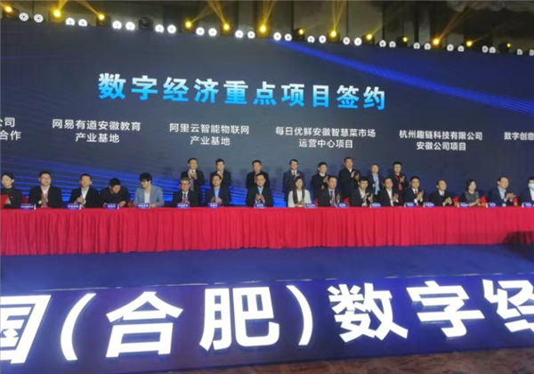 在當天的峰會現場,合肥市與11家數字經濟重點企業、10個數字經濟重點項目簽署合作協議。其中,有國內雲計算龍頭企業阿里雲、區塊鏈龍頭企業趣鏈科技、在線教育領軍企業網易有道、新零售領軍企業每日優鮮、健康醫療大數據領軍企業中電數據等一批優秀的新經濟企業,有中科院安徽超雲計算中心為代表的新基建項目,展現了合肥數字經濟蓬勃發展的良好狀態。