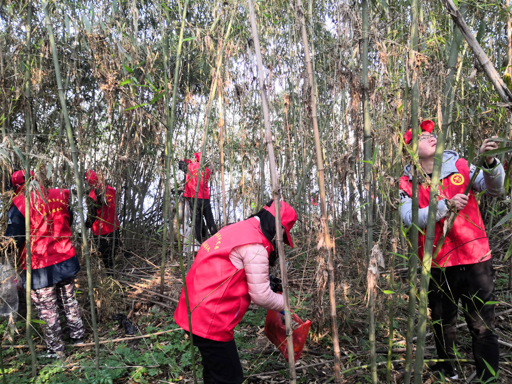 撿拾垃圾、清理河道、運送垃圾……12月21日,在安徽休寧縣橫江鐘塘橋至文昌橋段南岸河段的河道裏、河岸邊、樹林裏,穿著紅馬褂的志願者們在不停地忙碌著。