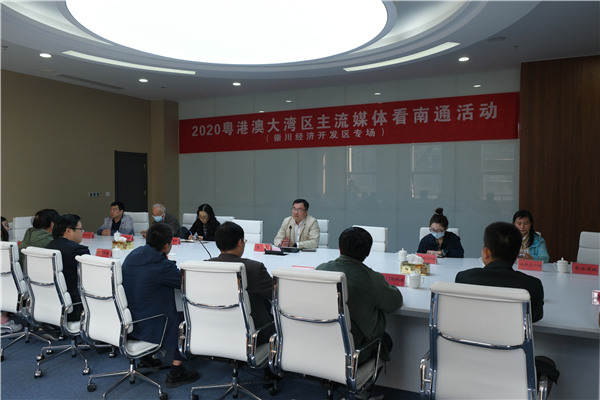 南通崇川經濟開發區黨工委副書記王晶向「2020粵港澳大灣區主流媒體看南通」活動採訪團一行介紹崇川開發區發展情況