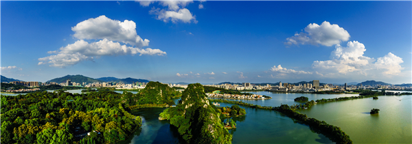 冬日時分,廣東肇慶街頭,藍天白雲映襯下,七星湖上水波蕩漾,西江河畔清風徐徐,北嶺山上綠樹成蔭,人們呼吸着清新的空氣,在優美的環境中工作生活,優質的空氣已成為肇慶人民的驕傲,「肇慶藍」頻頻刷爆肇慶市民朋友圈。