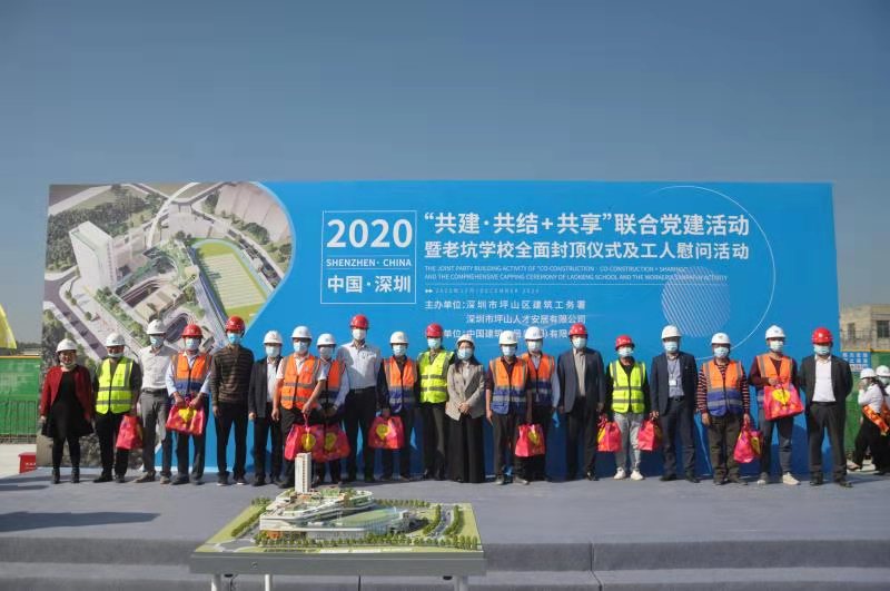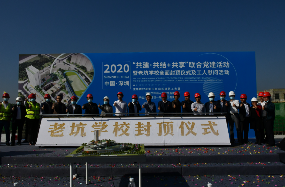 12月29日上午,由深圳市坪山區建築工務署建設開發,市人才安居集團旗下坪山人才安居公司代建的老坑學校項目實現全面封頂。