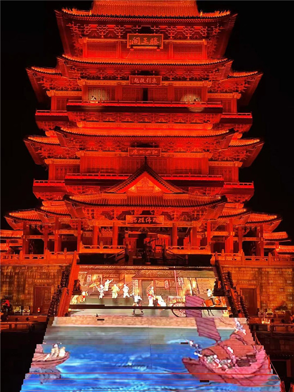 據了解,“七夢七境”是《尋夢滕王閣》的核心表達,該篇章主要圍繞聖賢對“藝術之夢、山河之夢、繁榮之夢、報國之夢、愛情之夢、光明之夢、復興之夢”暨“七夢”這一崇高理想追求展開,通過選取多位與滕王閣有密切聯繫的人物,以他們不同的人生境遇為故事背景,打造“夢中之閣、山河之閣、社稷之閣、風雨之閣、情愛之閣、心印之閣、盛世之閣”暨“七境”場景,旨在通過不同境界的情懷,給人以不同的思考。整台演出時長約90分鐘,使大家通過邊遊園、邊體驗、邊欣賞的形式“穿越時空”,領略盛唐氣勢、觀摩滕王雅宴、參賞王勃盛會。(記者 黃穎)