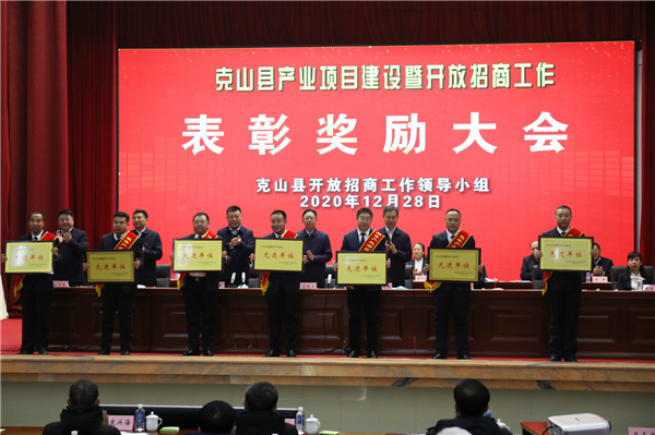12月28日上午,黑龍江省克山縣召開產業項目建設暨開放招商工作表彰獎勵大會,本次大會是繼克山縣年初在齊齊哈爾市範圍內率先召開對2019年度招商引資人員進行的表彰大會後,又一次對全縣招商引資有功人員進行的更高規模表彰。本次表彰大會設置獎勵金額比2019年增長173%,標誌着在落地項目的數量和金額上有了突破式增長。