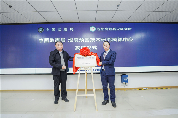 12月30日,中國地震局地震預警技術研究成都中心在成都高新減災研究所(下稱「減災所」)揭牌。應急管理部黨委委員,中國地震局黨組書記、局長閔宜仁與減災所所長王暾共同為中心揭牌。