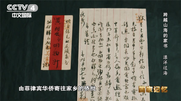 12月29日晚,為了全景展現僑批檔案的文化價值、歷史意義、社會影響,CCTV-4《國家記憶》欄目播出了系列紀錄片《跨越山海的家書》之《漂洋過海》。