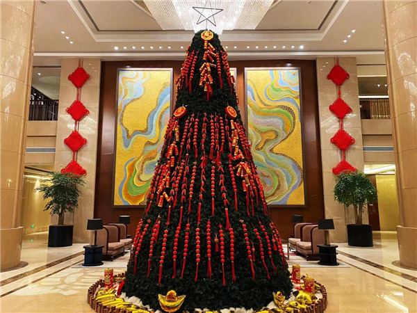 酒店內,紅色的燈籠和新年的貼紙格外醒目,讓人感受到濃濃的新年氛圍。酒店總經理周紅表示,「恢復營業後,將定時對酒店營業範圍內的場所、用品進行衛生清潔消毒,規範員工及客人的體溫監測,採用無接觸送餐、分餐服務等措施,全力保障旅客安全,歡迎遊客光臨巴登酒店。」