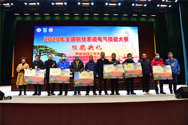 2020年全國脫掛索道電氣技能大賽暨“徽州百工”第五屆索道行業技能大賽日前在黃山市舉行。中國索道協會理事長王樹鶴蒞臨開幕式並致辭,安徽省總工會黨組成員、副主席許建清宣佈開賽,黃山市政協副主席、黃山市總工會主席徐玉寶主持開幕式,黃山風景區黨工委副書記、紀工委書記徐金武和黃山風景區黨工委委員、黃山旅遊發展股份有限公司黨委書記董事長章德輝分別致辭。