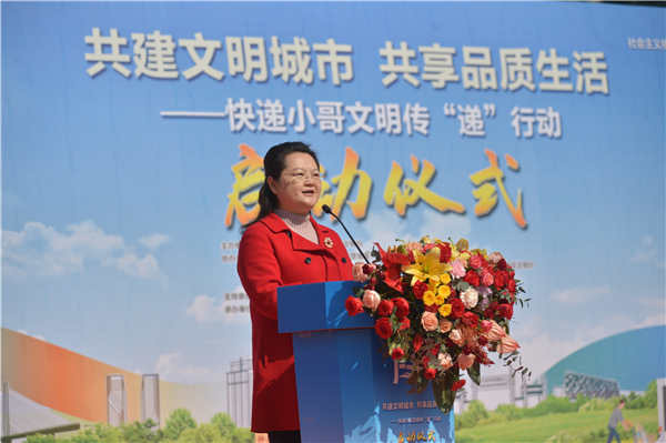 現場還舉行了文明火炬傳遞儀式和授旗儀式,啟動了「贈人玫瑰,手有餘香」線上文明傳「遞」活動,即日起,市民收到快遞外賣可掃指定二維碼,根據提示參加活動,有機會贏取禮品。