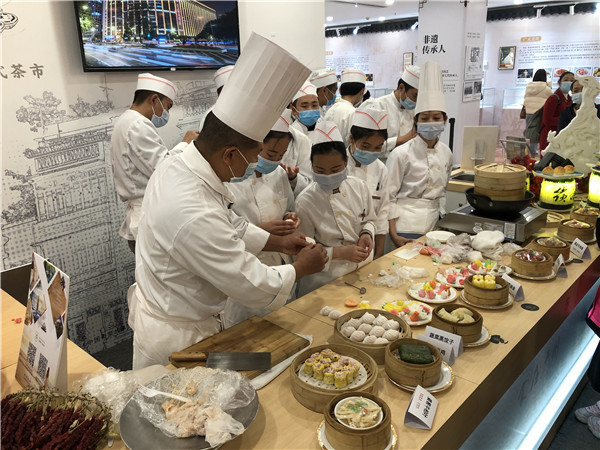 當天,26名「粵菜師傅嶺南集團班」學員還進行了「廣府點心初體驗」,個個都大顯身手,試做廣府點心給市民遊客品嘗。廣府點心用料精博,品種繁多,款式新穎,口味清新多樣;製作精細,鹹甜兼備,講究色澤和諧;造型各異,相映成趣,令人百食不厭,廣州街坊紛紛豎起大拇指。