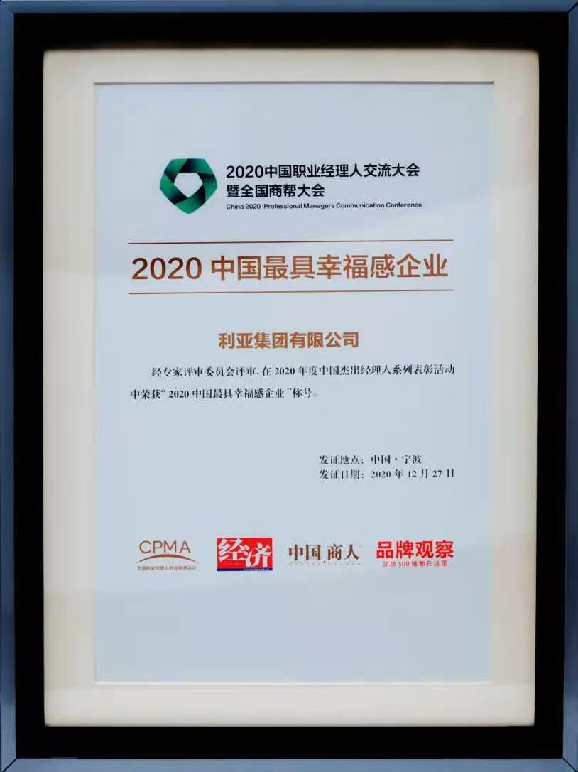 近日,在浙江省寧波市舉行的2020中國職業經理人交流大會暨全國商幫大會中,湖南利亞集團有限公司獲評2020—中國最具幸福感企業光榮稱號。