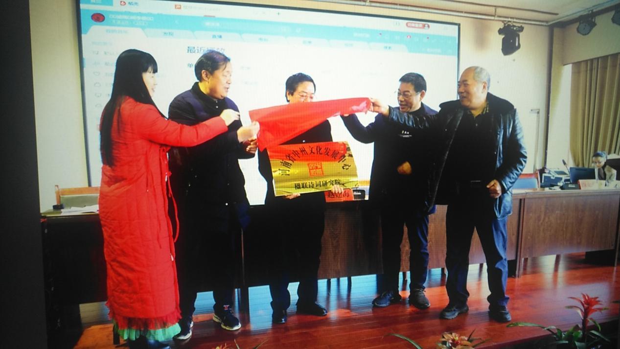最後,姚崗、趙建海、史寶明、丁夢、張道文為河南省中州文化發展中心楹聯詩詞研究院進行了揭牌儀式,大會在大家熱情洋溢的笑聲中落下帷幕。(郭延 劉同偉)