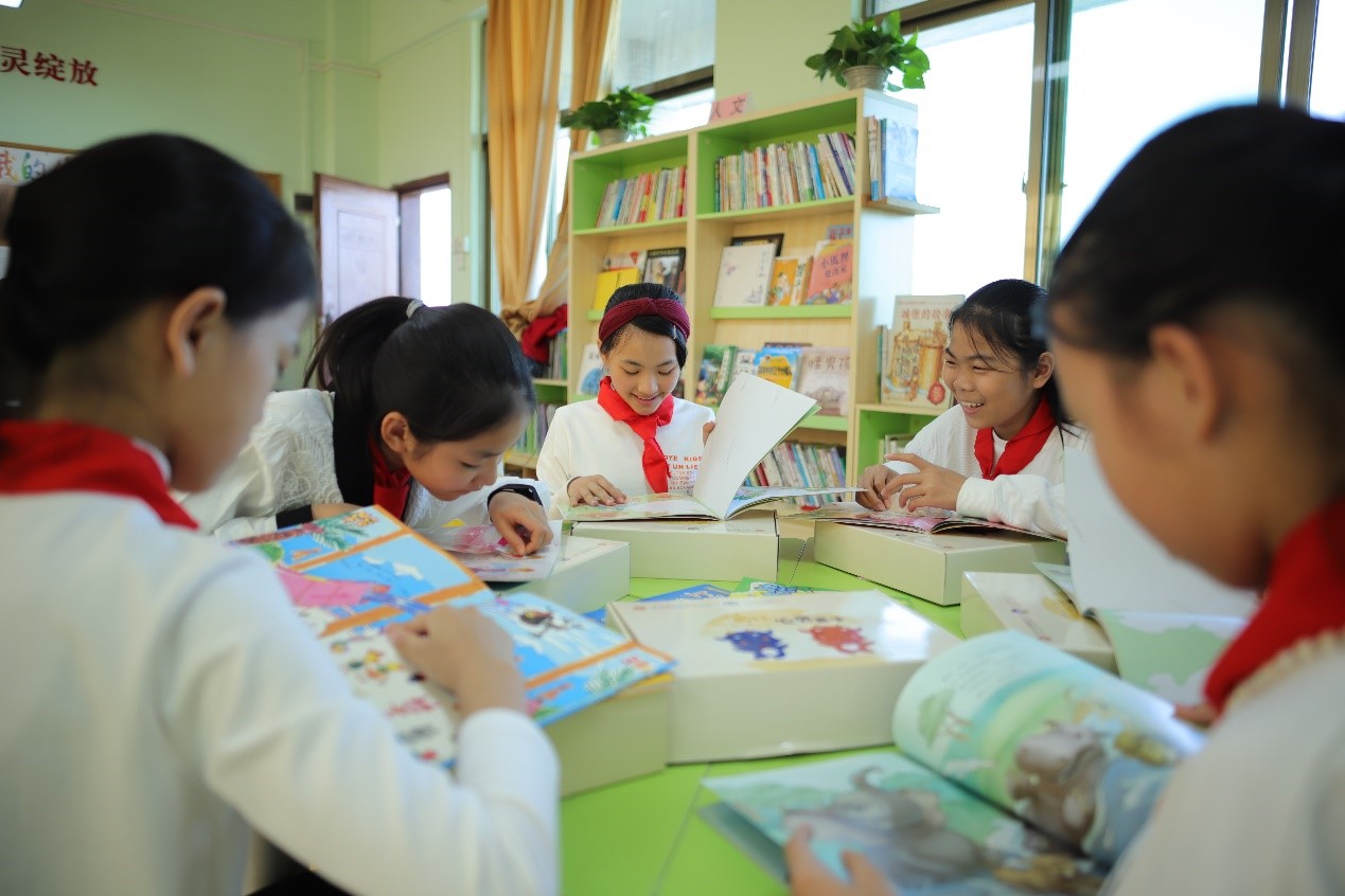 學生在香江愛心圖書室閱讀圖書(基金會供圖)