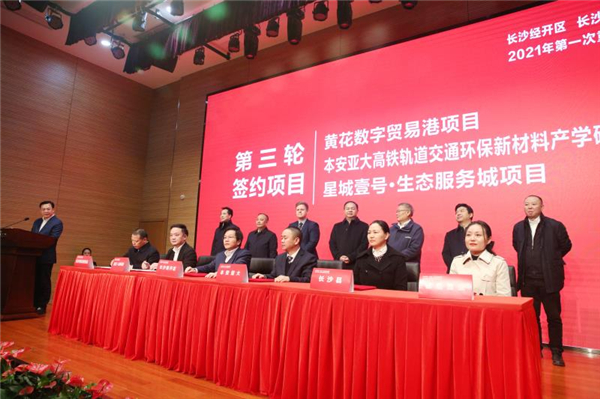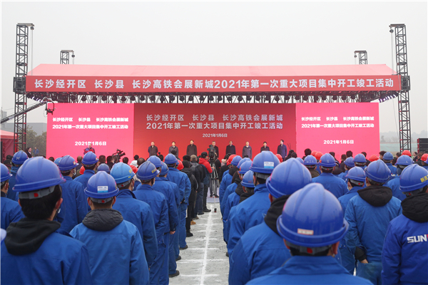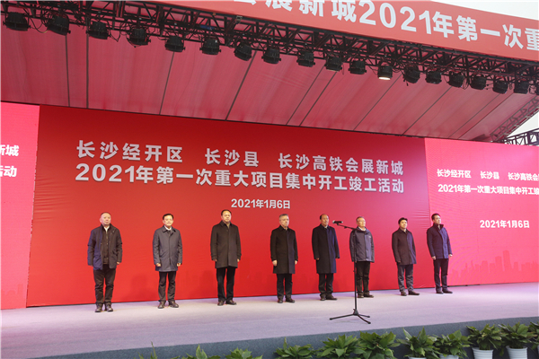 開工重大項目30個、總投資182.72億元,竣工重大項目35個、總投資159.39億元,集中簽約項目47個、總投資362.41億元。2021年1月6日,長沙經開區、長沙縣、長沙高鐵會展新城2021年第一次重大項目集中簽約開工竣工活動在長沙經開區山河工業城舉行。活動現場紅旗飄揚,山河智能挖掘機、旋挖鑽機等一字排開整裝待發,隨着挖掘機鳴響汽笛聲,湖南省副省長朱忠明宣佈項目開工竣工。