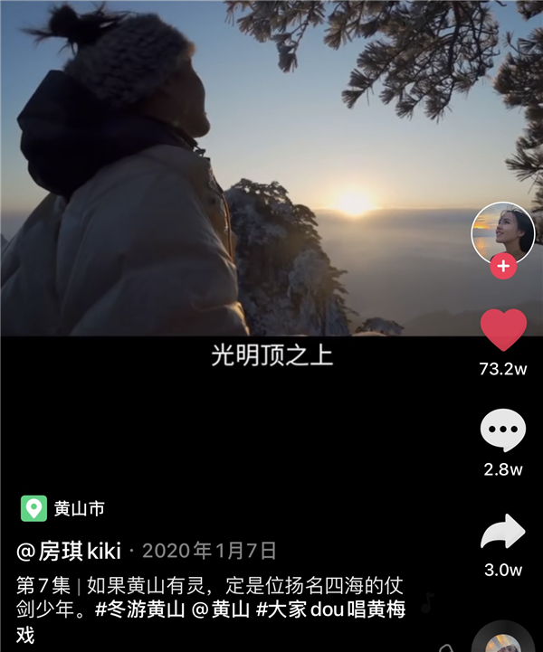 2020年1月,第一次來黃山的房琪她說:如果黃山有靈,定是位揚名四海的少年,少年用一抹晶瑩,把人間變成了仙境。