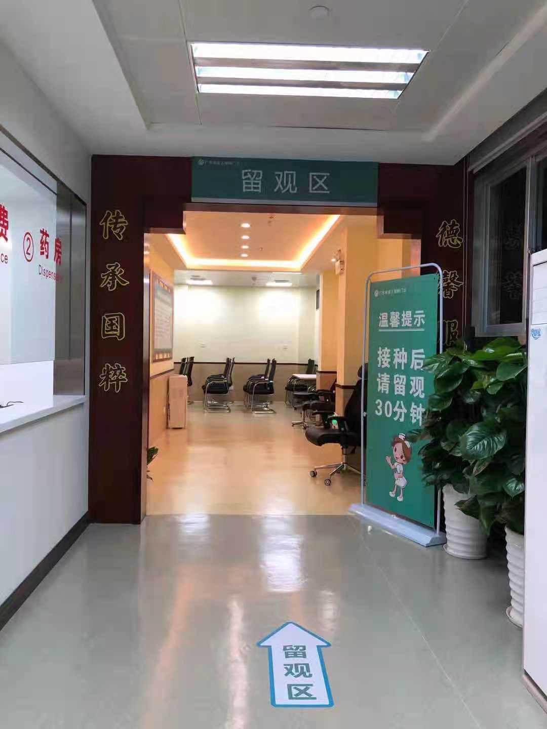 而在接種後,留觀區還配備桌椅、飲水機、電視機等設備,製作室內設宣傳欄,展示新冠病毒的防控注意事項、國內目前的防疫形勢、接種新冠疫苗前後的注意事項、接種後留觀的重要性等等。