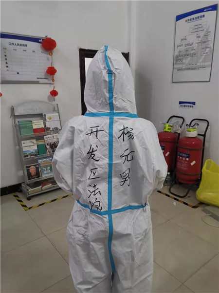 「第一次穿防護服,沒有想像的那麼有趣,總以為穿上『大白』很可愛,沒想到真是太難受了!」楊元男深有感觸地說。「由於是冬天,穿的衣物比較多,行動不便,剛穿一半,汗就順着脖子往下流,等穿好後,發覺裏面的襯衣已經濕透了,曾經身手敏捷的自己,如今顯得格外笨重,防護服下的聽覺、感覺、嗅覺仿佛都失靈了。直到那一刻才真正體會到抗疫一線醫護人員的艱辛,從穿上防護服那一刻,所有的緊張和害怕全都被拋到腦後了,心裏只有一個信念:人民需要我,為民服務是我的責任和義務,我一定努力做好核酸檢測點的工作,一定要做到萬無一失。」穿上防護服的楊元男化身成「大白」,在百姓眼中是那麼可親可敬。