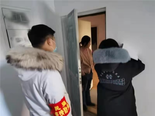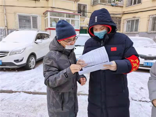 該院院領導帶頭積極參與,47名黨員幹部以支部為單位分成15支小分隊,疫情防控工作組組長葉向陽、馮秀清帶隊在冰天雪地里出發,一張排查表,一支簽字筆,一群幹勁十足的黨員幹部,在民強街道文化社區、濱河社區的街道樓宇間穿行,挨家挨戶詢問家庭基本信息,統計居民中、高風險地區旅居史,是否從事冷鏈運輸工作,是否進行核酸檢測等具體情況,逐戶排查登記。歷時5個小時,排查了兩個社區1000餘戶1500餘名居民,在排查過程中,由該院黨組成員、副檢察長任慧濤帶隊的第五黨支部發現一居民有中、高風險地區旅居史立即將情況報告社區,社區及時採取了相關隔離防控措施,有效保證了社區居民的健康安全。