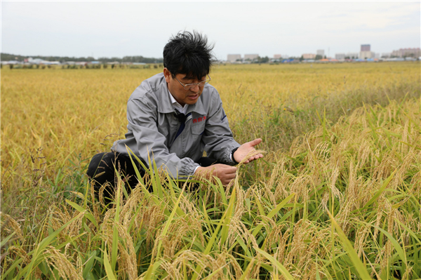 五常市喬府大院農業股份有限公司董事長喬文志查看水稻長勢