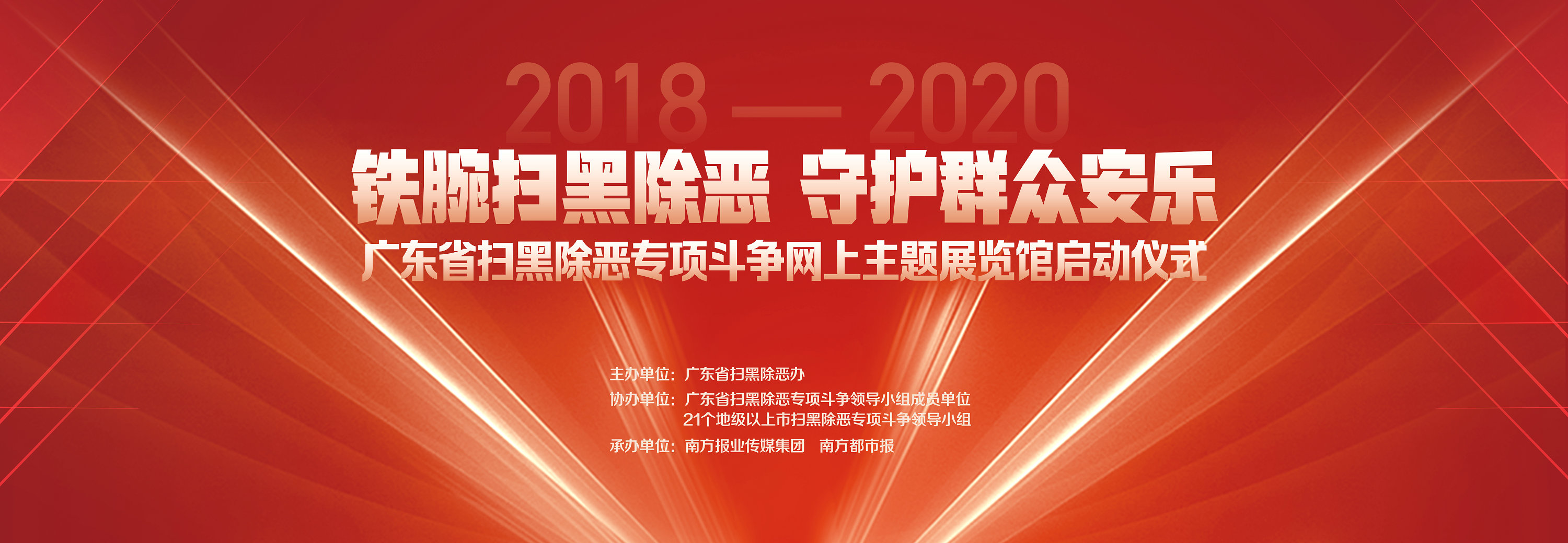 本次活動由廣東省掃黑除惡辦主辦,廣東省掃黑除惡專項鬥爭領導小組成員單位、21個地級以上市掃黑除惡專項鬥爭領導小組協辦,南方報業傳媒集團承辦。