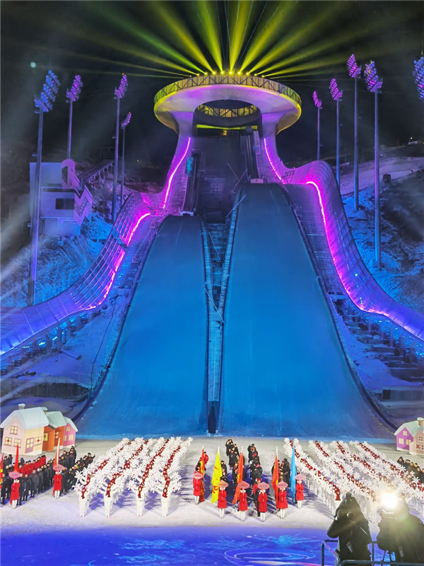 國家跳台滑雪中心是張家口賽區建設工程量最大、技術難度最高的競賽場館,將承辦跳台滑雪和北歐兩項項目的全部比賽,產生8塊金牌。其設計靈感源於中國傳統吉祥飾物「如意」,取名「雪如意」,首秀於2020年12月21日河北省第二屆冰雪運動會。(攝影 田德鋒)