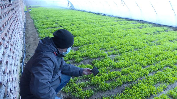 李寶金經營兩棟日光溫室大棚。這幾天氣溫低,李寶金想了解溫室大棚蔬菜生產知識,得知縣農技人員在線上授課培訓,李寶金早早的在手機上下載「走進富裕」APP客戶端觀看,跟着直播學起了農業生產技術。