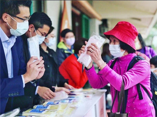 王家揚在社區派發口罩助力抗擊疫情