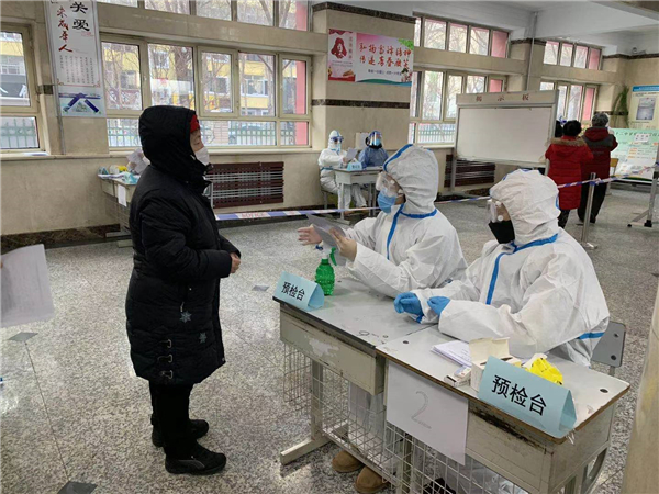 1月22日下午,仲昭祥檢察長與包保單位民強街道聯繫對接,與該街道紀瑞金書記就工作安排、人員配置等進行了深入研究。仲昭祥檢察長作為區級領導,嚴格落實包保責任,對街道落實疫情防控工作部署情況進行督導檢查,積極幫助街道社區解決實際困難。1月23日早6:30,該院「黨員先鋒隊」首批24名黨員幹部,在院領導和疫情防控工作組組長的帶領下,踏着「四九」的薄冰分別趕赴道外區第十二中學校、第二十一中學校、第五十八中學校,站上了協助街道開展全民核酸檢測的「第一班崗」。23日、24日兩天時間,該院80名黨員幹部輪流上崗、認真守崗,協助街道社區工作人員及衛健部門人員對民強街道6300餘名居民群眾進行了核酸檢測工作。為確保檢測效率,1月23日夜班黨員幹部與社區工作人員、醫護人員攜手奮戰至深夜,克服一切困難的同時,耐心紓解群眾心理。