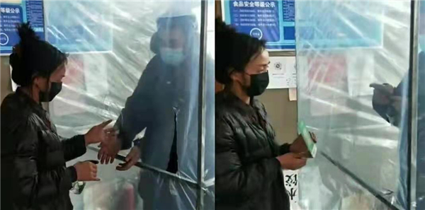 「疫情發生以來,為了滿足村民正常的生活食品物品需求,我店裏一直都在營業,每天接觸很多人。安裝『隔離艙』後,避免了飛沫交叉感染,保障了雙方健康安全。」興隆村食雜店店主趙立華介紹,「隔離艙」材料用的是塑料透明膜,安全無毒,每日對其表面多次消毒。