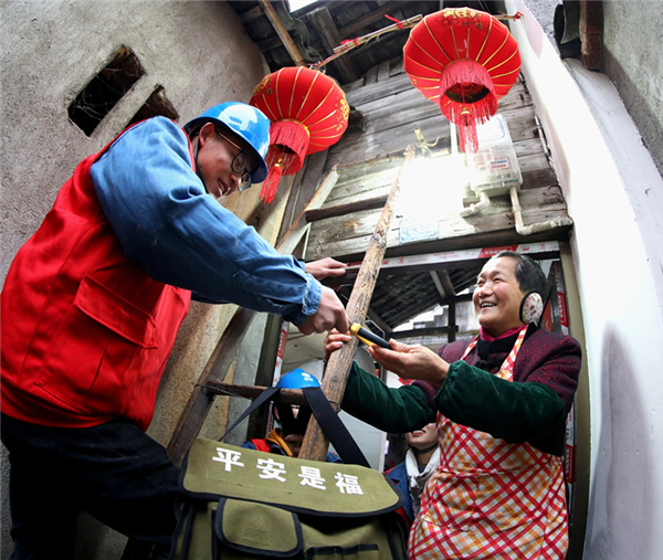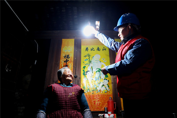 1月25日,安徽歙縣供電公司黨員服務隊的志願者到上豐鄉上豐村回訪脫貧戶王玲玲(左),給老人們送去迎春的祝福。