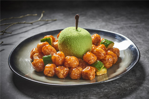 青蘋果造型的太空蛋,輕輕一敲,湧動的慕斯傾瀉而出,咕嚕肉的酸甜與慕斯的奶甜,吃起來有滋有味,是恍如隔世的初戀味道,是記憶中那份美好的味道。