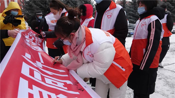 出征儀式上團縣委副書記進行了出征動員講話,對即將出征的青年志願者們作出了動員和鼓舞。青年志願者代表作了表態發言,呼籲新時代青年志願者要用真誠的行動、執着的信念、奉獻的愛心,助力打贏疫情防控阻擊戰。最後,文聯主席宣佈塔河縣青年防疫志願者突擊隊正式出發。