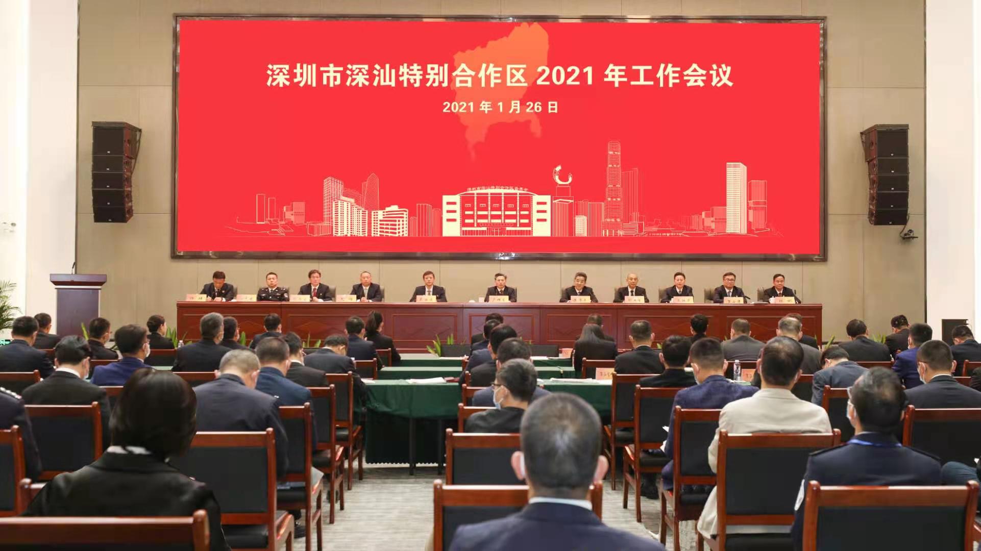 1月26日,深圳市深汕特別合作區(簡稱「深汕合作區」)2021年工作會議召開。會議全面回顧深圳第「10+1」區2020年工作,確定2021年為深汕合作區「全面履職深化年」,並部署七個方面34項具體落實舉措,為全年各領域重點工作制定「任務書」、規劃「路線圖」。