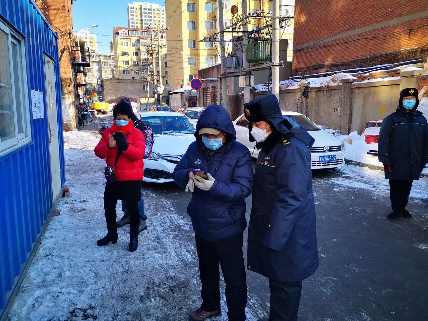 在路口臨時搭起的夜間防疫卡點帳篷處,執法人員不畏嚴寒,一邊對來往人員進行掃碼檢查,一邊對他們進行疫情宣傳教育,並叮囑大家:現在是關鍵時期,多關注官方新聞,出門記得佩戴口罩,沒事儘量少出門,在家不串門、不扎堆兒。