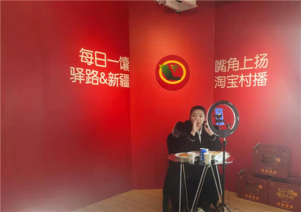 烏魯木齊饢文化產業園(二期)通過「線上+線下」相結合的方式,不斷拓寬銷售渠道,截止目前,產業園共與300餘家單位簽訂採購訂單。圖中小美女正在通過抖音直播帶貨與地麵店完美對接,讓消費者享受線上消費的優惠便捷