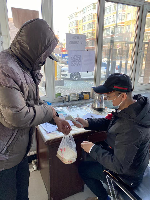 見到張瑀的時候他正在小區執勤,負責小區的掃碼、登記、測溫工作,作為志願者正在為疫情防控做着貢獻。「最近事情還是比較多,在小區做志願者,還要兼顧工廠的生產、訂單、銷售還有物流的事情。疫情防控和企業生產兩不耽誤。」張瑀一邊做着疫情防控引導一邊說到。