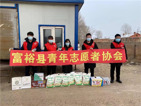 近日,黑龍江省富裕縣青年志願者協會的五名青年志願者代表在會長張瑀和協會秘書長、富裕縣團縣委副書記張爽的帶領下,裝載着酒精、消毒液、口罩以及麵粉、方便麵、飲用水等防疫和生活物資,驅車來到富裕縣友誼鄉長勝村,他們代表青年志願者協會全體志願者向駐守在長勝村進村卡點的執勤人員表示感謝和慰問。