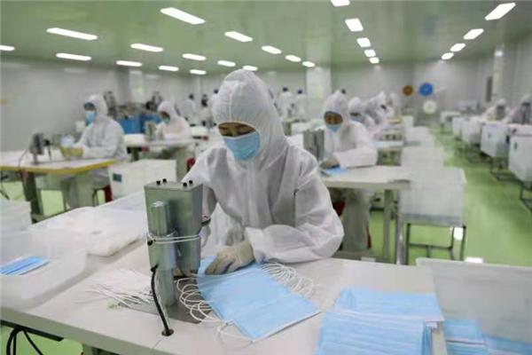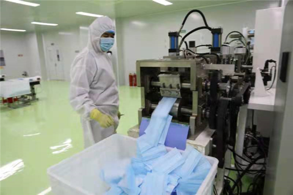 在國富自治醫用口罩生產車間,一台國內最先進的醫用口罩生產設備,同時把無紡布、熔噴布、無紡布、鼻樑條、彈力布,一次壓合成型,從原材料到變成成品口罩,只需短短的0.2秒鐘時間。工人們各司其職,緊張有序地操控設備、檢查口罩質量、縫紉口罩帶、整理口罩裝盒。據口罩生產車間負責人曲鵬程介紹,公司嚴格按照疫情防控的相關規定, 車間工人上下班要求掃碼、測溫、消毒,而且來上班的工人都是本村(屯)村民,經過數次篩查沒有隱患的村民,家在外地的工人暫時一律不用。現在每天的口罩產量達到10萬隻,既保證了當地的口罩需求,而且大多數銷售到外地,部分還出口。